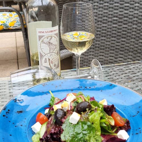Feta Cheese, Red Onions, Cherry Tomato, Black Olives, Mixed Leaves, Olive Oil & Balsamic Vinegar Dressing